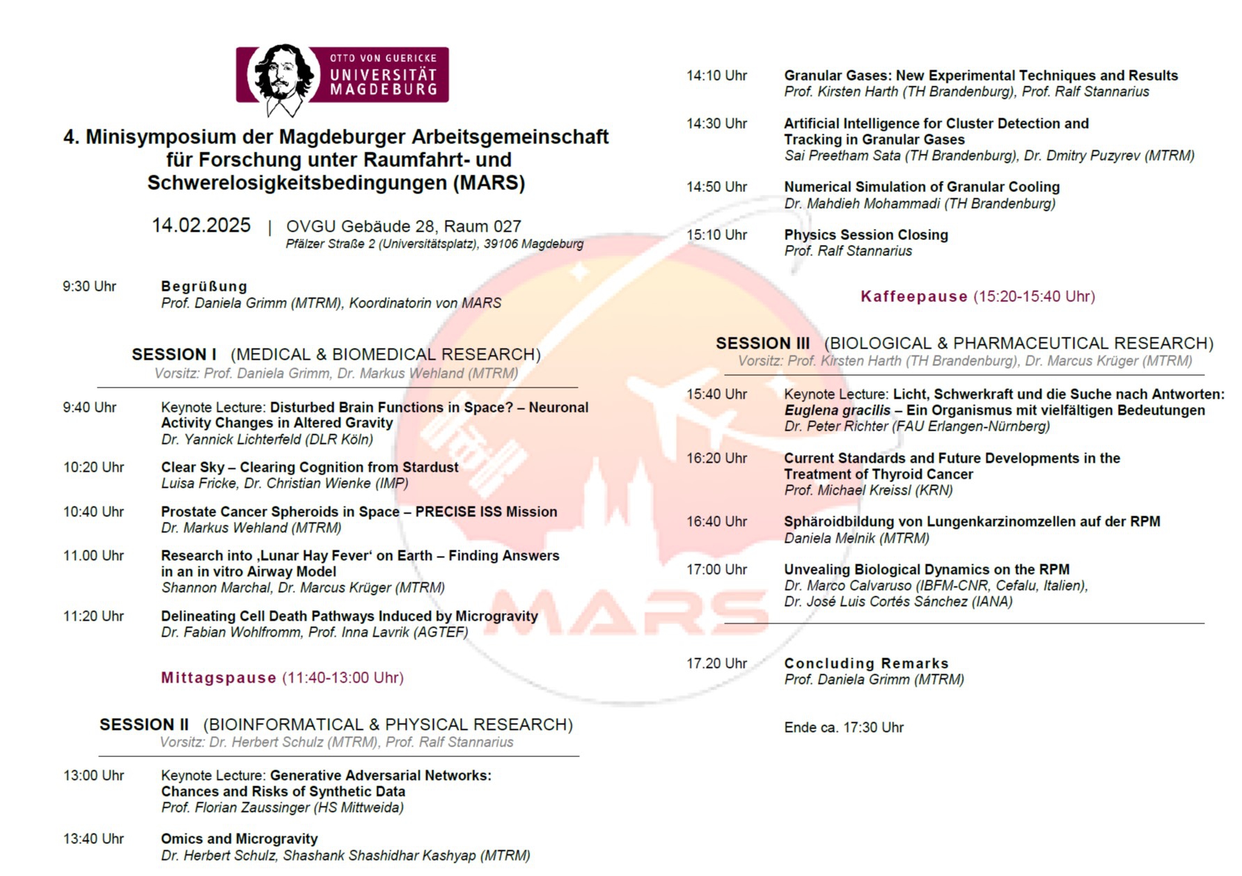 Die Mitglieder/innen der Arbeitsgemeinschaft MARS haben ihre aktuellen Arbeiten und Forschungsaktivitäten im Bereich Schwerelosigkeit präsentiert.