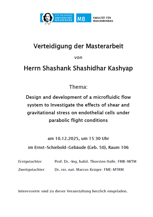 Thema: Design and development of a microfluidic flow system to investigate the effects of shear stress on endothelial cells under parabolic flight conditions
